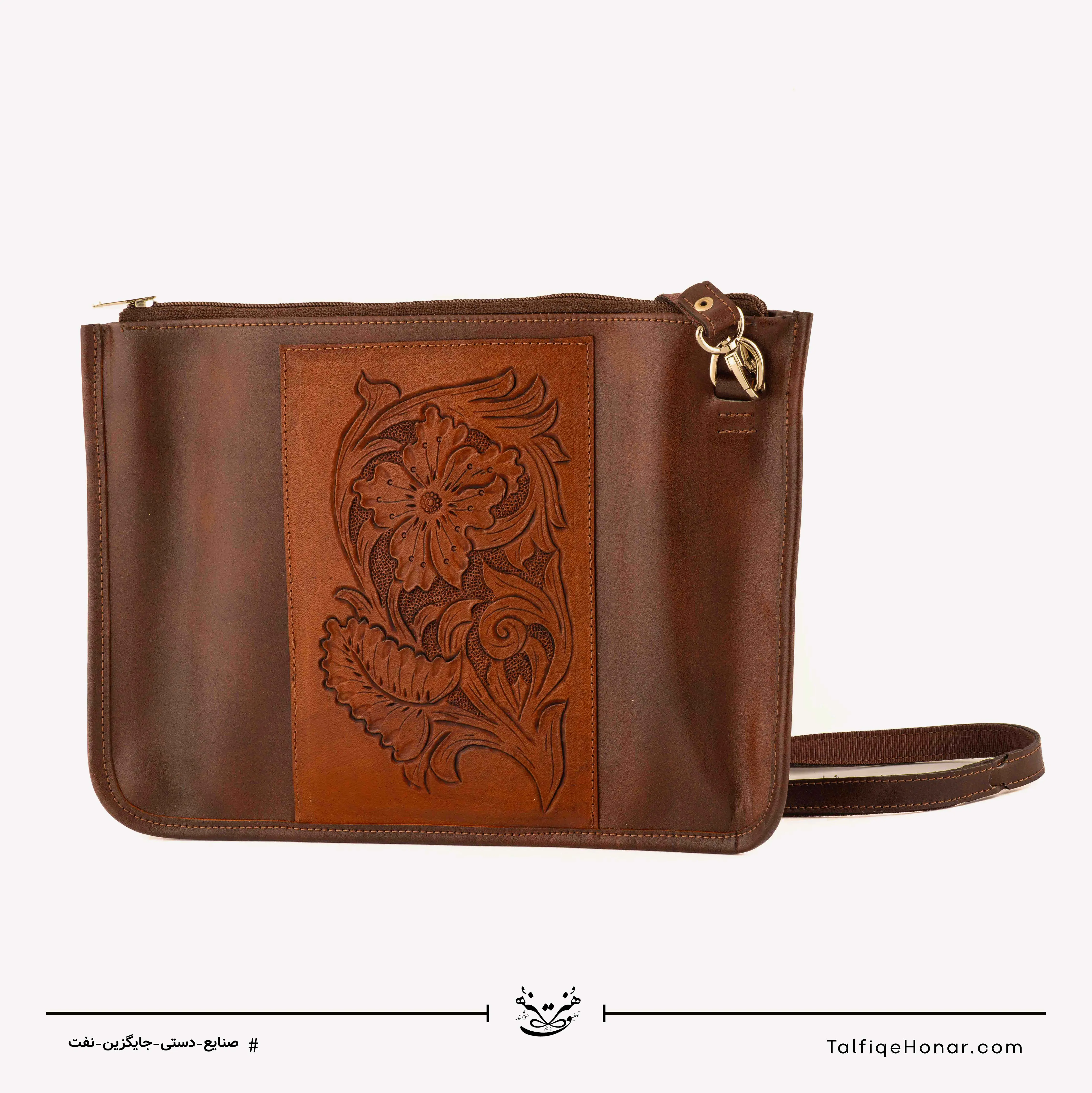 کیف دوشی زنانه حکاکی پاسپورتی طرح میرا رنگ قهوه ای سایز 25*30