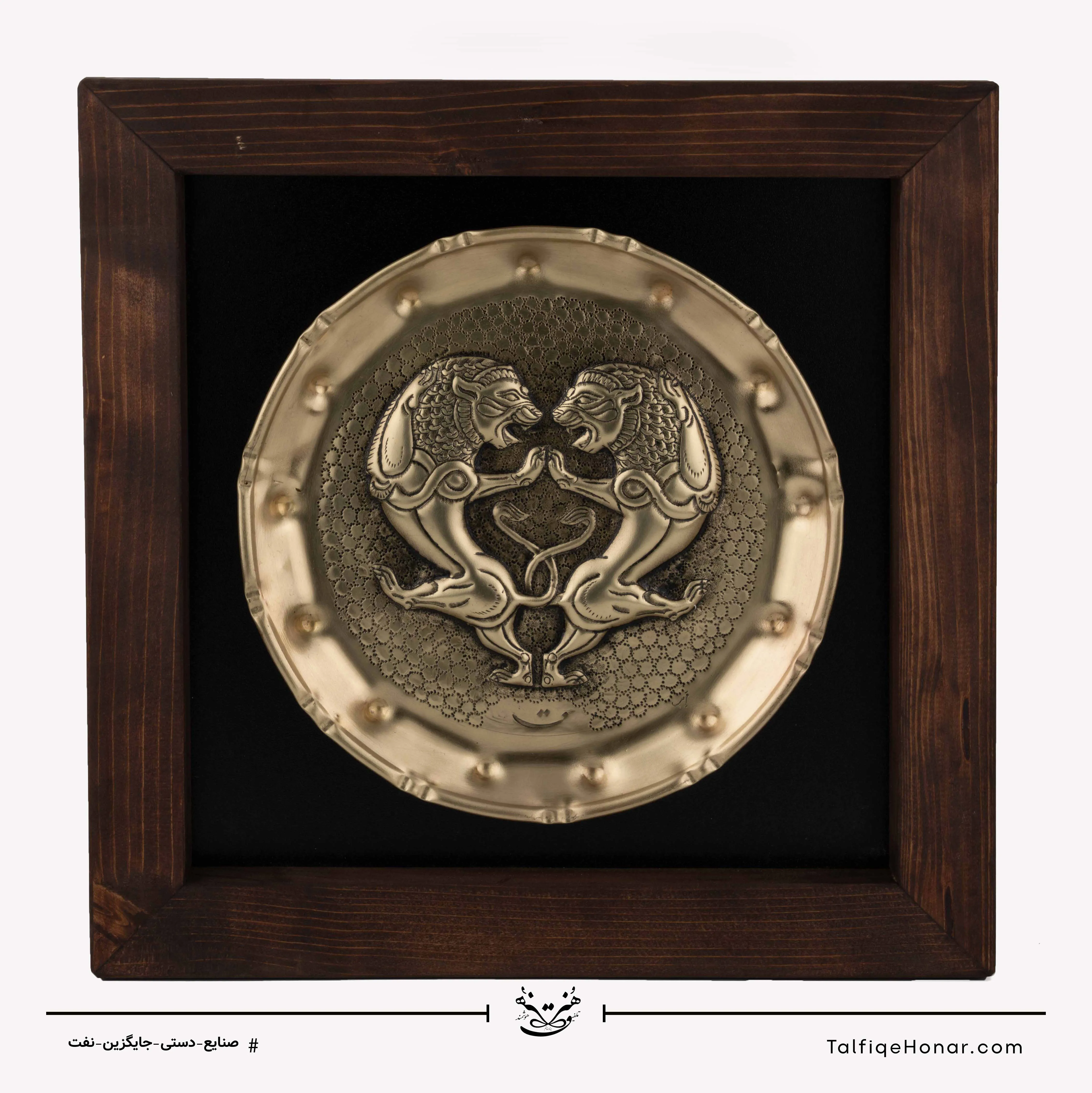 قاب قلم زنی برنجی طرح شیر براق سایز 36*36