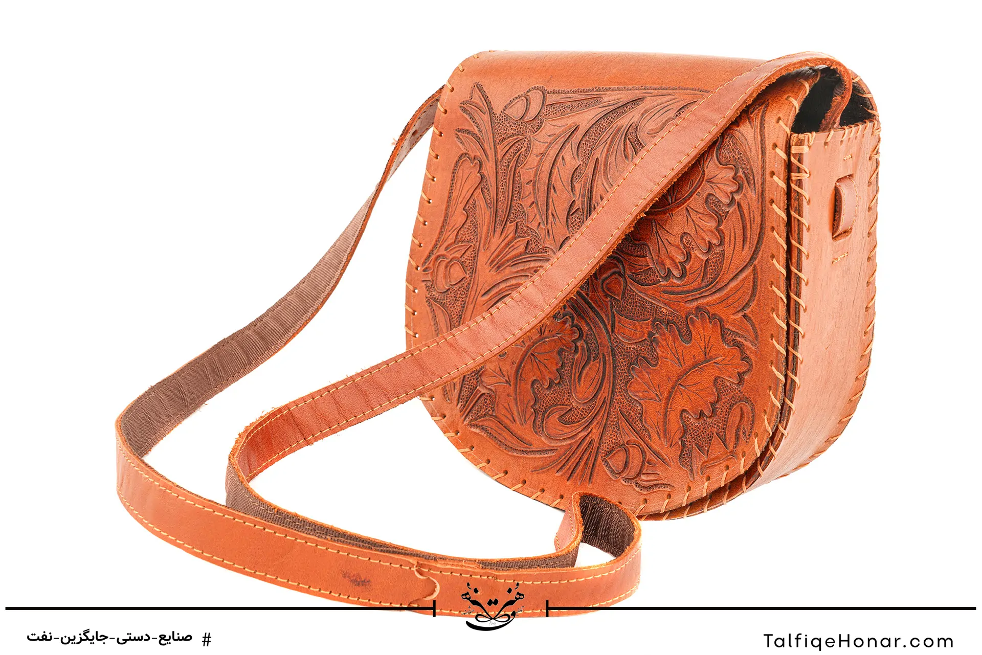 - کیف دوشی زنانه دیما با تکنیک چرم حکاکی شده روی چرم طبیعی گاوی